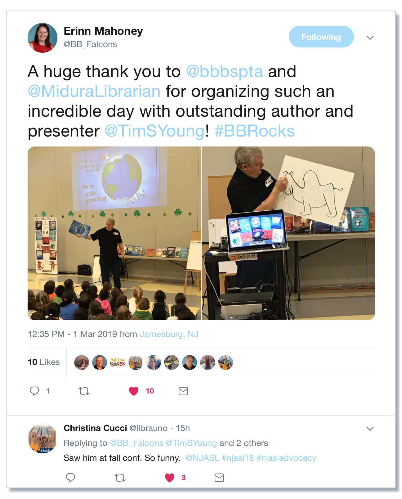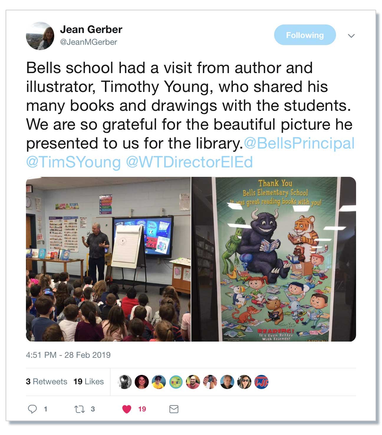 I’ve visited a number of schools in the district where Bells is and other schools nearby. Word of mouth between schools is a great way that schools have found out about me. A few times teachers who saw my presentations at their schools have referred me to the schools that their children attend.