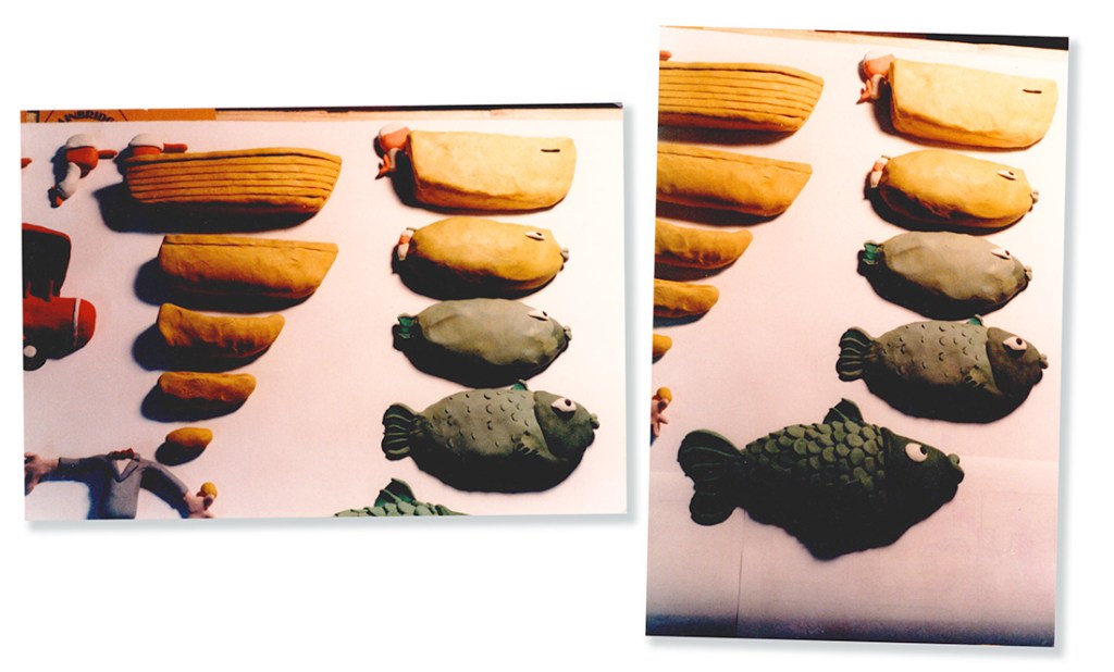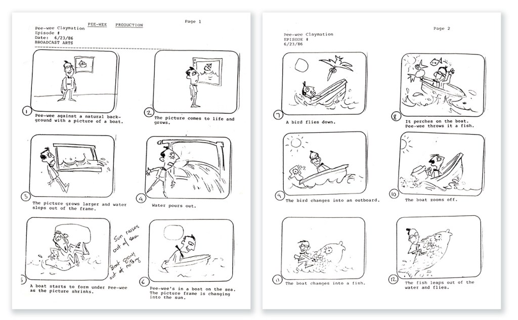 I don’t remember exactly how but I was asked to build clay models for their next short. It involved a clay Pee-Wee in front of a painting of the sea that turned into the ocean. A boat appears whither turns into a fish and then an airplane which disappears into a cloud. The storyboard was very surreal. My job was to make all of the models including all of the transitions from boat to fish to plane. I was told there would be a whole series of these clay Pee-Wee animations so I was looking forward to working on those. For some reason it was decided that only this one and the space one were made.