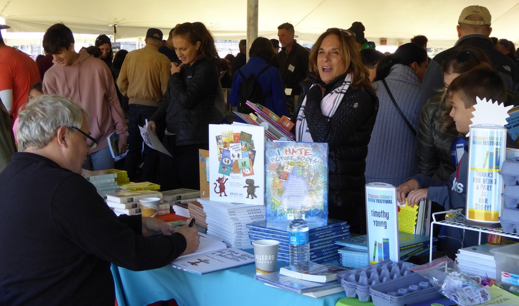 Since I had not been to the Chappaqua Festival before I met some people who didn’t know my books yet. Even better, I met a bunch of people who know my books but have never met me. I was especially pleased to meet an 8th grade teacher who told me that she started every school year by reading I Hate Picture Books! Somehow it recently went missing and she was thrilled to be able to get a signed copy to replace it.