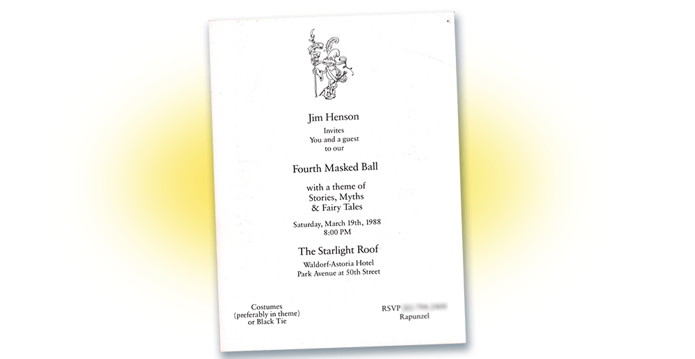I was also invited to Jim Henson’s Masked Ball. I had worked there since the fall of 1987 but I had only met him twice, in passing. At the masked ball there was a receiving line and I shook his hand there.