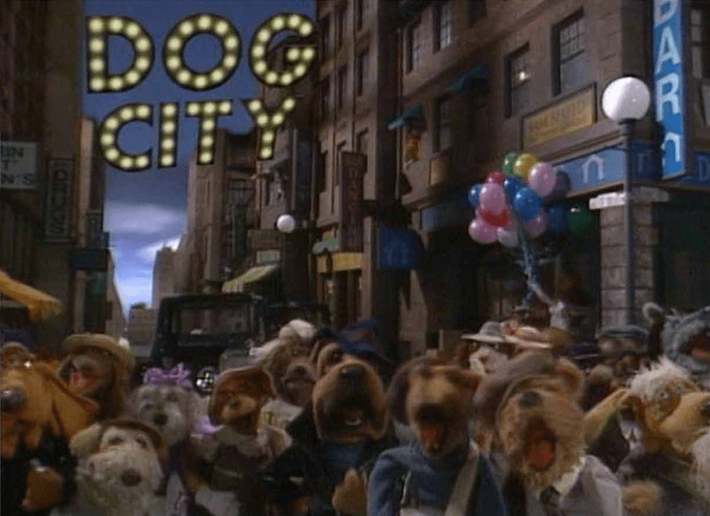 One episode of the show included Dog City, a gangster movie with dog characters. I got to build one dog, a whippet. He’s third from the right above. He was not a main character and ended up being dressed as the newsboy in a number of scenes.
