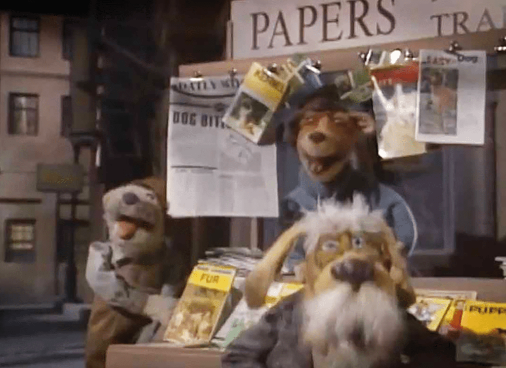 Over the years I did other projects related to the Muppets; some toys I sculpted, plush designs and even a glass Cookie Monster Christmas ornament but I never did work directly for the company again. A few years ago I was looking to see if I could find a photo of my Newsboy Whippet Muppet. I was adding some images to my school visit presentation when I discovered I had one more connection to Jim Henson that took 30 years to find out. When I worked on Dog City, it was in the New York City workshop. The show was filmed in a studio in Toronto. I came across behind the scenes footage someone had taken on their home video camera. They had only uploaded it to YouTube in 2016. In watching it I realized that my Muppet was being performed by Jim Henson himself! I was floored. I could not believe that I never knew that he had put my Muppet on his hands and brought it to life. Below is an edit showing him performing with my puppet on his right hand in the opening number.