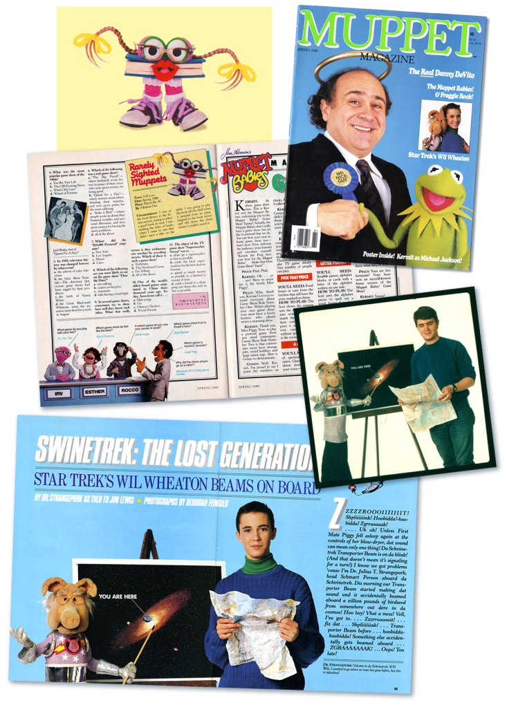 I started by working in the photo studio where they were setting up for the next issue of Muppet Magazine. That’s where they handed me a Kermit. I helped stage some sets for photos of Danny Devito and Wil Wheaton (I even stood in for him for lighting purposes) and I got to build my first Muppet, this cute book character.