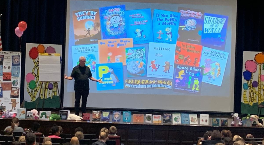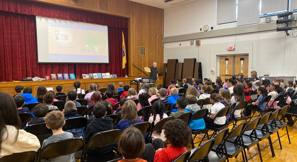 I didn’t do as many school visits as I would have liked this fall but I had a great one in southern Virginia in October. The school system had me present in a large high-school auditorium to the students from 3 elementary schools. The house was packed.