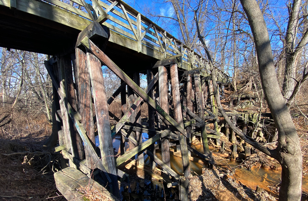 Growing up, I lived on the other side of Rt 35 from my school. I learned that I could walk a short ways down the highway to the railroad bridge and follow the tracks to the school. I also used to play and hang out under another, older wooden trestle bridge that went over the Luppatatong Creek which ran behind our house. In 1992, years after I moved away from Keyport, the railroad line was turned into the Henry Hudson Bike Trail. I had always wanted to walk on it and I took the opportunity. The trail now extends to the Atlantic Highlands. I’d love to walk the whole path someday.